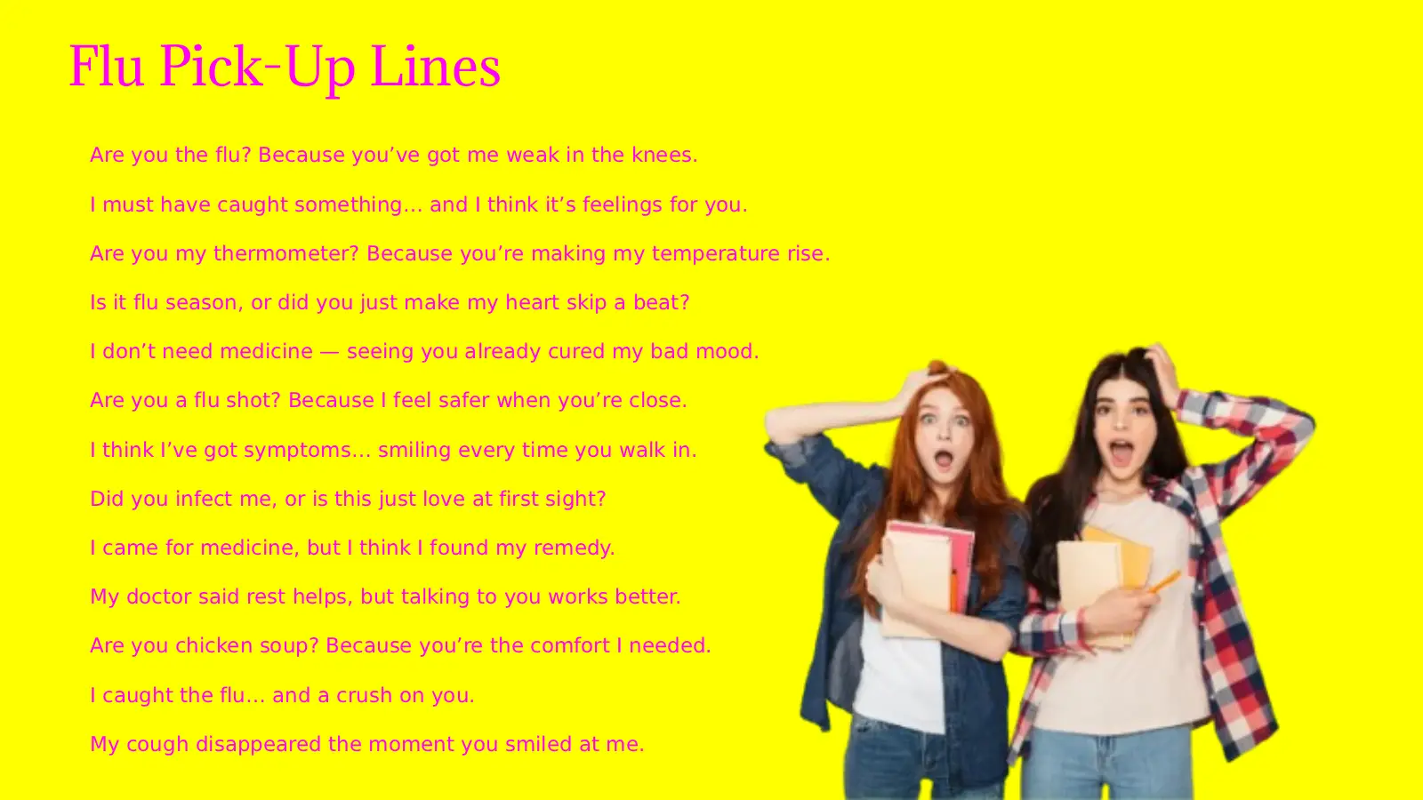 When it comes to combining humor and romance, nothing spices up sick days like a playful pickup line. That’s where ...