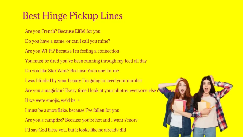 With the 459+ pickup lines listed in this article, you have options for every personality and mood, from cheeky humor to heartfelt romance. The key is to deliver them confidently and authentically, making your Hinge interactions enjoyable, lighthearted, and memorable.