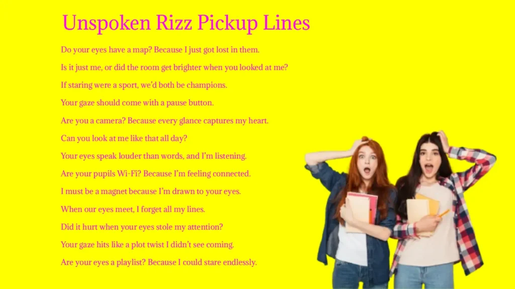 Unspoken Rizz Pickup Lines are subtle, charm-driven phrases that rely on body language, energy, or vibes rather than explicit words. They help you flirt smoothly without coming off as cheesy or over-the-top.